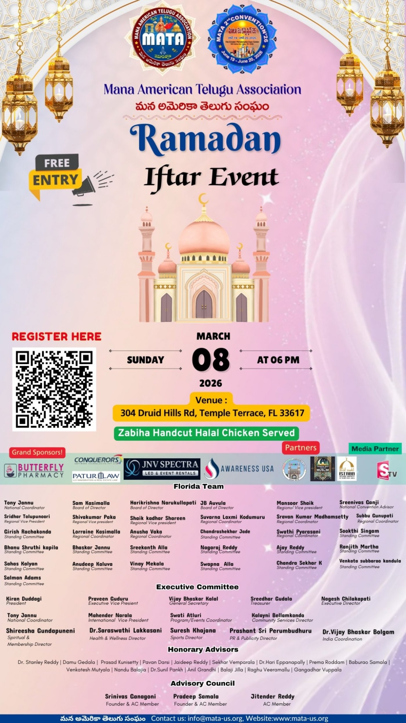 We hope this message finds you in good health and high spirits. As the blessed month of Ramadan graces us we warmly invite you to join us for an iftar party. The food will be hand cut halal and compliant with highest halal standards overseen by our regional vice president mansoor bhai. The event will have Namaz, and other halal activities like kids reciting suras from Koran.