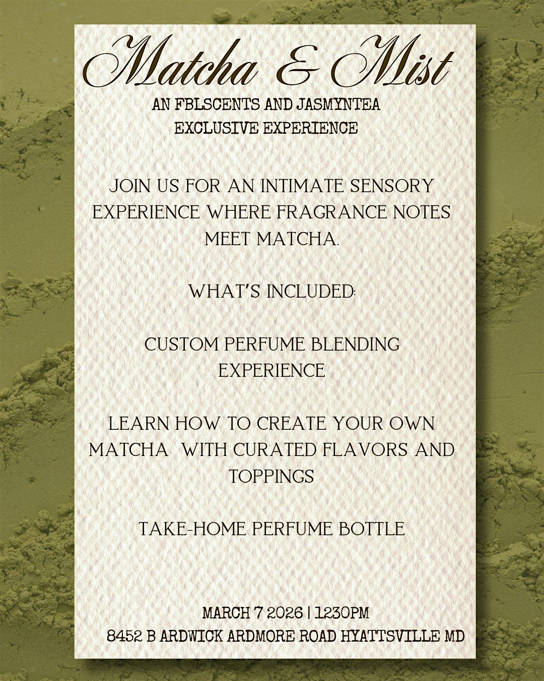 Join us for an elevated spring experience where you’ll create your own handcrafted matcha drink and design a custom signature perfume. Guided by experts, you’ll explore luxury fragrance notes and rich tea blends in a cozy, social setting designed for creativity, relaxation, and connection.