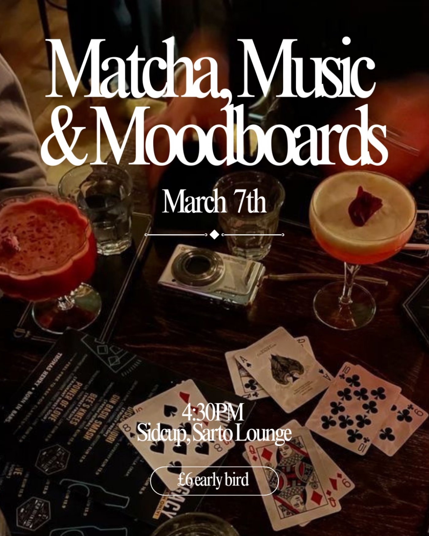 Calling all my manifestation queens (& Kings)! On the 7th of March at 4:30PM in our local Sarto Lounge Sidcup, we are hosting a public matcha, music & guided moodboarding evening!