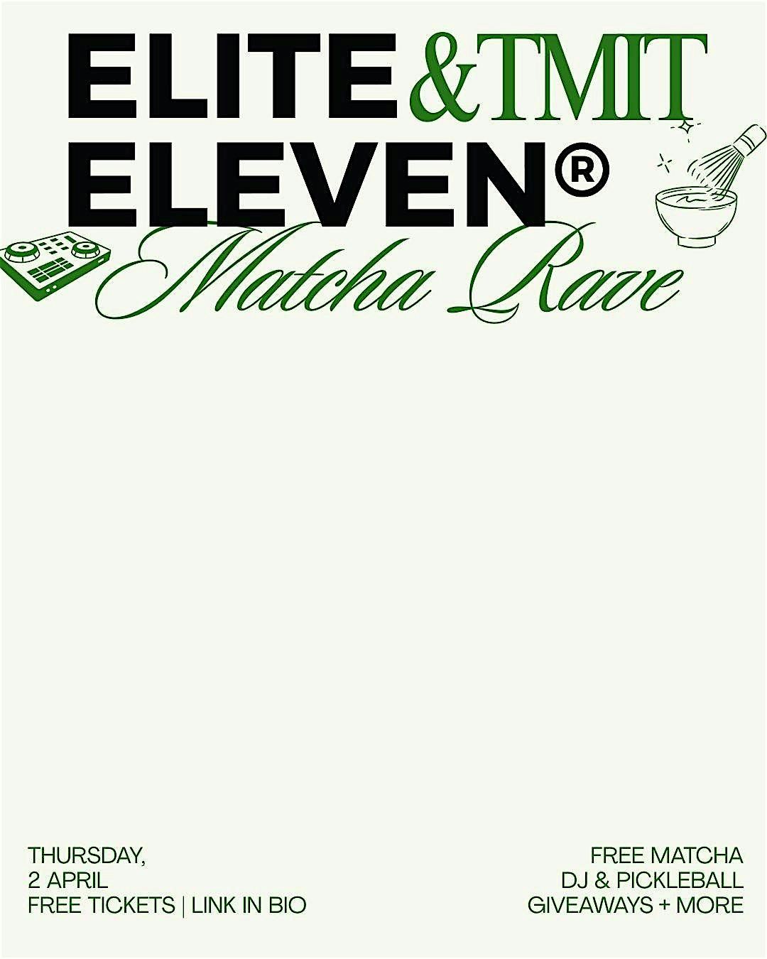 6:30 - 8:00am: Hangout, Free MOOCHA Matcha, Dj Robson.bpm, and Free Pickle Ball