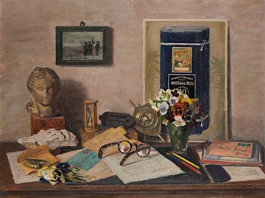 Image: Alberto Salietti, On the desk, 1946, oil on plywood, private collection. Courtesy Il Ponte Casa d’Aste