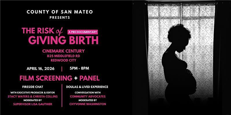 The event will feature a screening of the PBS documentary The Risk of Giving Birth, followed by a conversation with the film’s Executive Producer Stacy Waters and Editor Christa Collins. The evening will also include a panel discussion with healthcare providers, and advocates moderated by Chyvonne Washington of San Mateo County’s Black Infant Health Program.