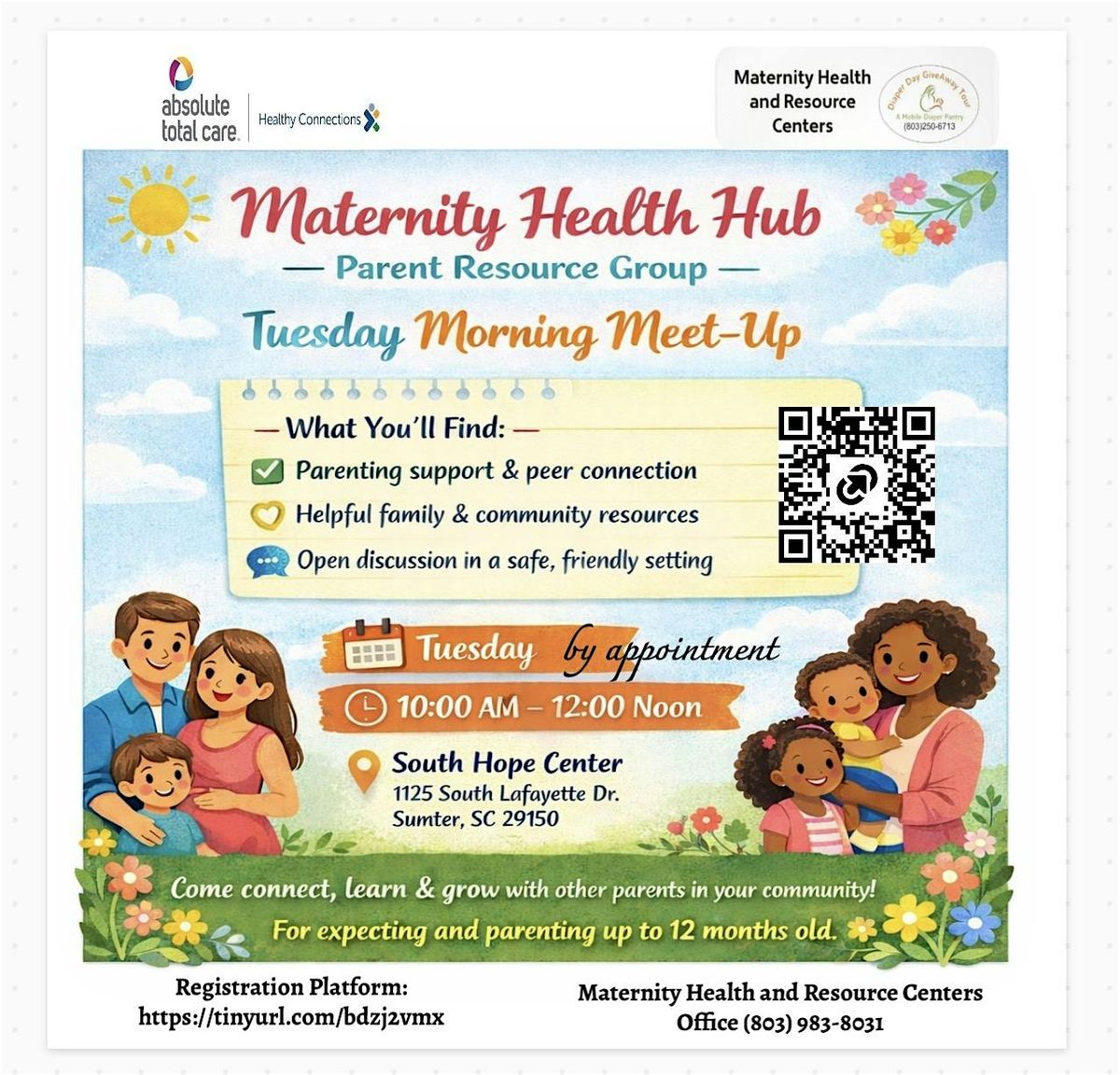 Welcome to the Maternity Health Hub – Parent Resource Group Tuesday Morning Meet-Up! Join us at South Hope Center Tuesdays- by appointment .. for a wonderful gathering of parents like you.