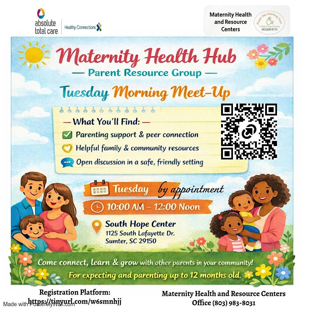 Welcome to the Maternity Health Hub – Parent Resource Group Tuesday Morning Meet-Up! Join us at South Hope Center Tuesdays- by appointment .. for a wonderful gathering of parents like you.