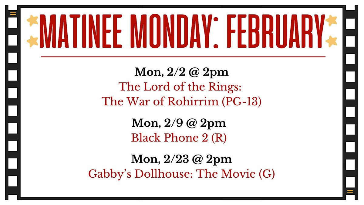 Lights, camera, action! Matinee Monday provides an afternoon screening of a recent blockbuster.