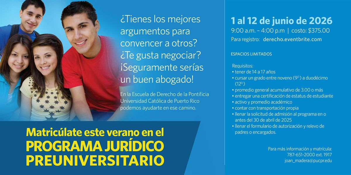 Si te apasiona el derecho y quieres explorar el mundo de la abogacía, este programa es para ti. La Escuela de Derecho de la Pontificia Universidad Católica de Puerto Rico te ofrece una experiencia única donde podrás desarrollar habilidades de argumentación, negociación y análisis jurídico.