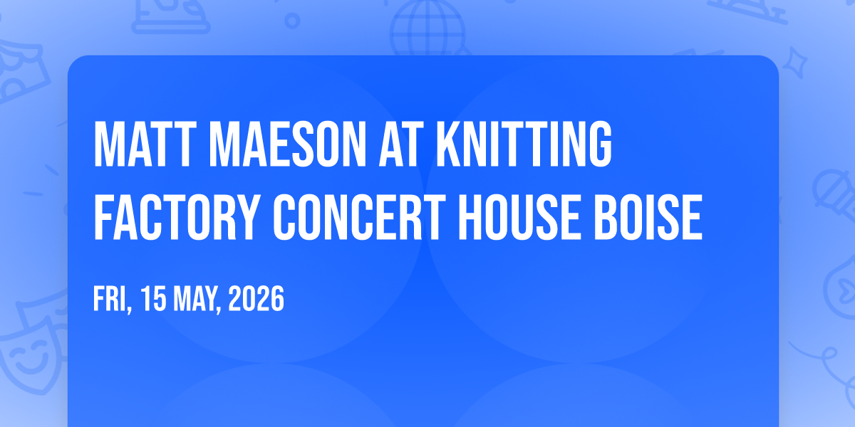 ✨ Enter a world of endless possibilities at Matt Maeson at Knitting Factory Concert House Boise, where every moment tells a story! 🏛️ The stunning Knitting Factory Concert House Boise in vibrant Boise, ID transforms into a realm of wonder on May 15th, 2026 at 08:00 PM. 🌟 They have crafted an experience that goes beyond the ordinary, combining elements of surprise, delight, and pure entertainment. Every detail has been thoughtfully considered to ensure your journey with us is nothing short of extraordinary. 🎯 Join fellow adventure seekers and memory makers in this celebration of imagination and innovation. 🎊 Reserve your spot today and be part of something truly special!