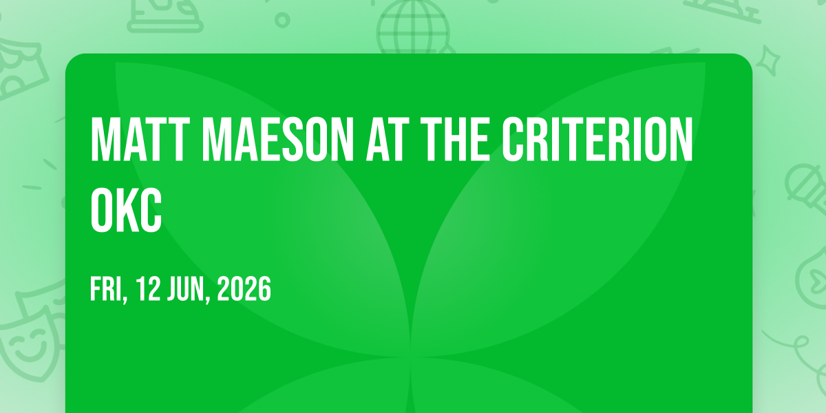 ✨ Embark on an extraordinary journey at Matt Maeson at The Criterion OKC, where every moment promises to be unforgettable! 🌟 Imagine of transforming The Criterion OKC in the heart of Oklahoma City, OK into a realm of endless possibilities. 📅 Join us on June 12th, 2026 at 08:00 PM for an experience that will challenge your imagination and exceed your expectations. 🎯 This carefully curated event combines the finest elements of entertainment, innovation, and community spirit. Whether you're an adventure seeker, culture enthusiast, or someone looking for unique experiences, this event offers something special for everyone. 🎊 Don't miss this chance to be part of something extraordinary!