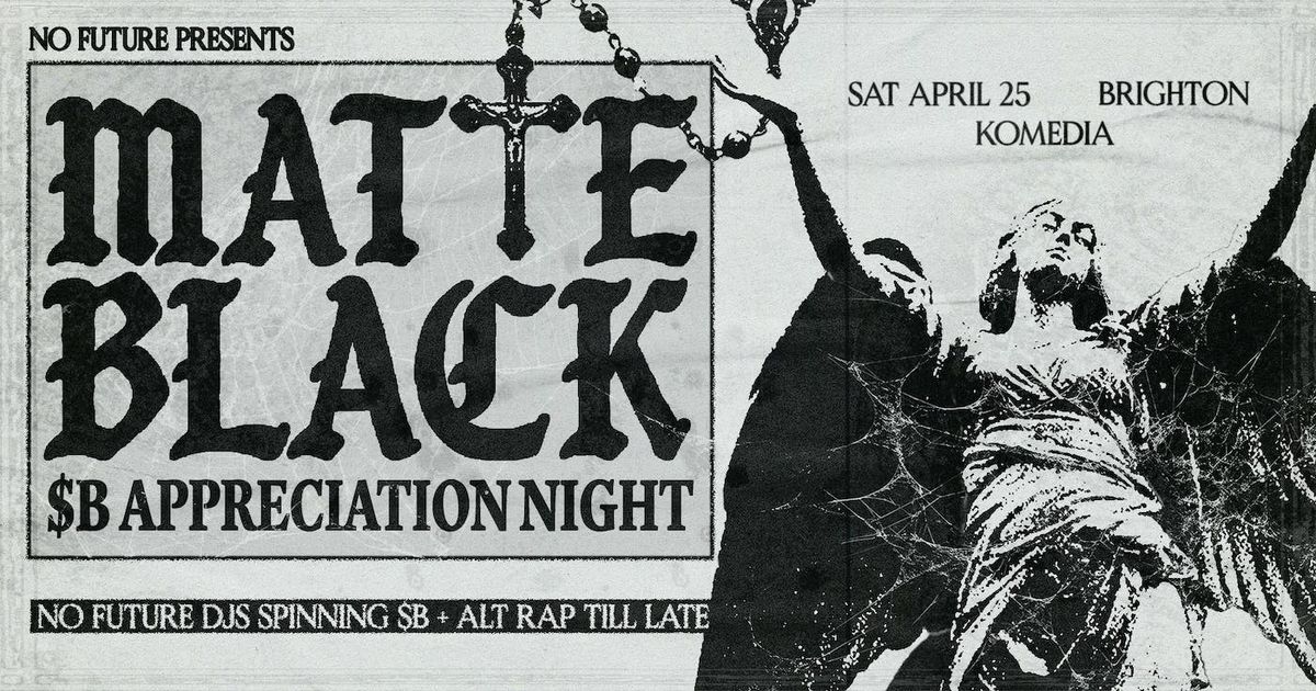 ONE LAST PIC AND I'LL BE GONE MATTE BLACK: $B APPRECIATION NIGHTSATURDAY 25TH APRIL 2025KOMEDIA BRIGHTONDOORS AT 11PM 18+