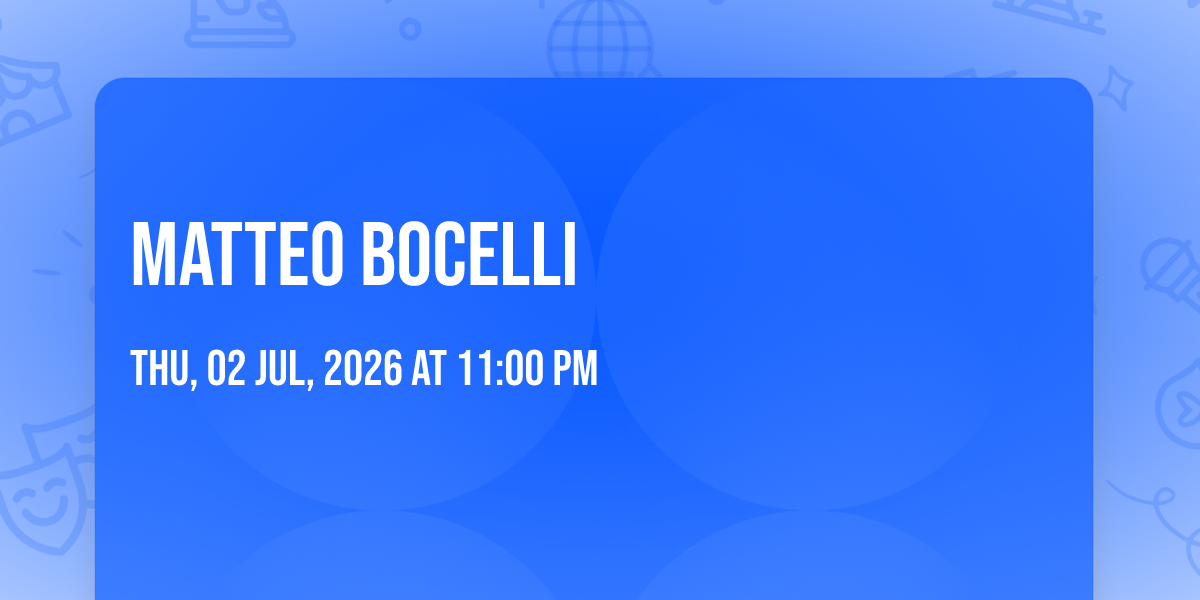 📍 Location: 42.9795, -85.5901🎉 Prepare to be amazed at Matteo Bocelli, the most anticipated gathering of the season! 🌟 Set against the stunning backdrop of Frederik Meijer Gardens Amphitheater in vibrant Grand Rapids, MI, this event promises to redefine your expectations. 📅 Mark your calendars for July 2nd, 2026 at 11:00 PM and get ready to immerse yourself in an atmosphere of wonder and excitement. ✨ From the moment you arrive, you'll be transported into a world where memories are made and stories come alive. They have crafted an experience that perfectly harmonizes entertainment, innovation, and community spirit. 🌈 Join us as we create moments that will be discussed for years!