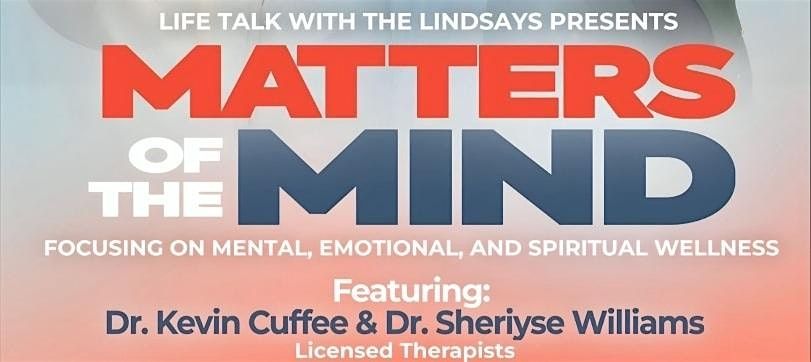 The way that we think, act and behave starts with our minds. Matters of the Mind is a social gathering, led by Licensed Therapists, Dr. Sheriyse Williams and Dr. Kevin Cuffee, that is designed to bring us into Self-Awareness of some of those issues in our lives that may be affecting our overall health and well-being, and offer Self-Care information and practices that will assist us in total healing and wholeness! This will not only be a time of information, encouragement and impartation, but also a time of enjoyment in an wholesome environment. DON'T MISS IT!