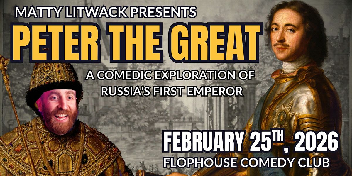 Comedian Matty Litwack takes you on an extensive journey through the life and times of Peter the Great, the first emperor of Russia. This show will cover all the hits from late 16th/early 17th century Russian History! The Streltsy uprising of 1682, the rise and fall of the Regent Sophia, the Great Northern War with Sweden - also, whatever happened to Peter's son Alexis? You'll learn all this and more at the show!