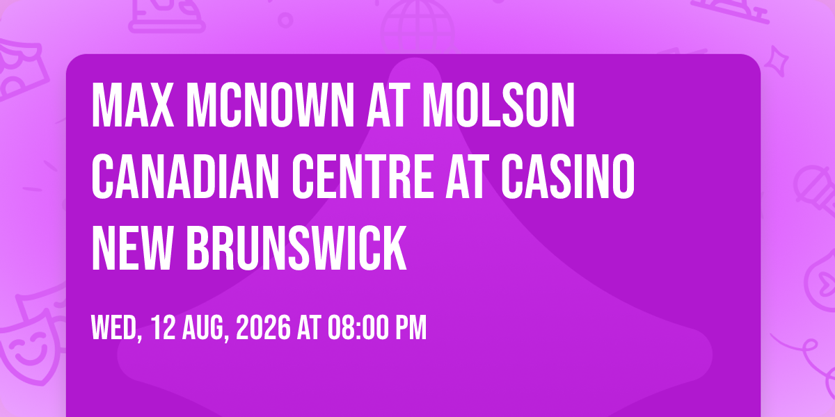 ๐ Welcome to Max McNown at Molson Canadian Centre at Casino New Brunswick, where the impossible becomes possible and dreams take flight! ๐๏ธ Join us at Molson Canadian Centre at Casino New Brunswick in the heart of Moncton, NB for an event that will redefine your expectations. ๐ On August 12th, 2026 at 08:00 PM, witness the transformation of space and time into something truly magical. โจ It's a curated experience combining the best of innovation, entertainment, and community spirit, creating moments that will be remembered for years to come. Whether you're a first-time visitor or a seasoned enthusiast, prepare to be amazed. ๐ Book now to ensure your place in this unforgettable experience!