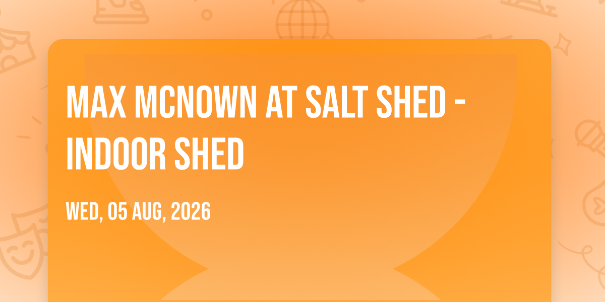 ✨ Experience the magic of Max McNown at Salt Shed - Indoor Shed, where moments become memories that last a lifetime! 🏛️ The iconic Salt Shed - Indoor Shed in Chicago, IL sets the perfect stage for an unforgettable celebration on August 5th, 2026 at 08:00 PM. 🌟 It's been a curated experience that brings together the best of entertainment and innovation, creating an atmosphere of wonder and excitement. From the moment you arrive, you'll be immersed in a world where the ordinary transforms into the extraordinary. 🎊 Book early to secure your place in what promises to be an event that will be talked about for years to come!