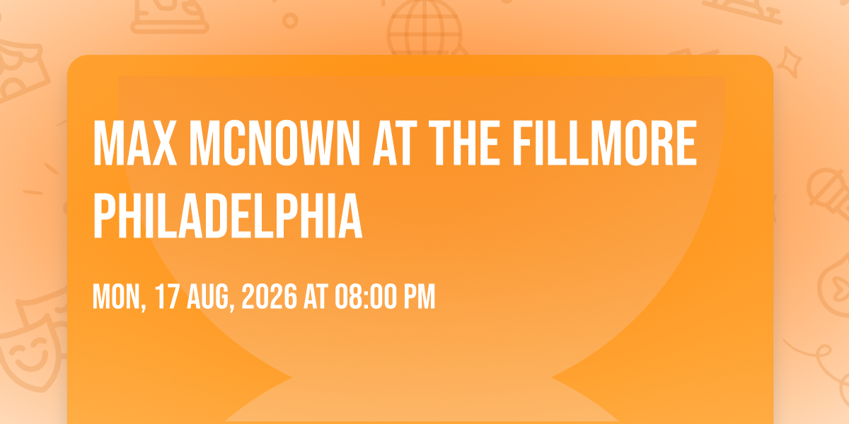 ✨ Discover the extraordinary at Max McNown at The Fillmore Philadelphia, where magic meets reality in ways you've never imagined! 🏛️ Set in The Fillmore Philadelphia nestled in bustling Philadelphia, PA, this event promises to be a landmark occasion. 📅 Taking place on August 17th, 2026 at 08:00 PM, it's going to create an atmosphere where every moment becomes a cherished memory. 🌟 Immerse yourself in an experience crafted with attention to every detail, designed to surprise and delight at every turn. They have worked tirelessly to ensure this event exceeds all expectations, bringing together elements of entertainment, innovation, and pure joy. 🎊 Don't miss your chance to be part of this remarkable journey!