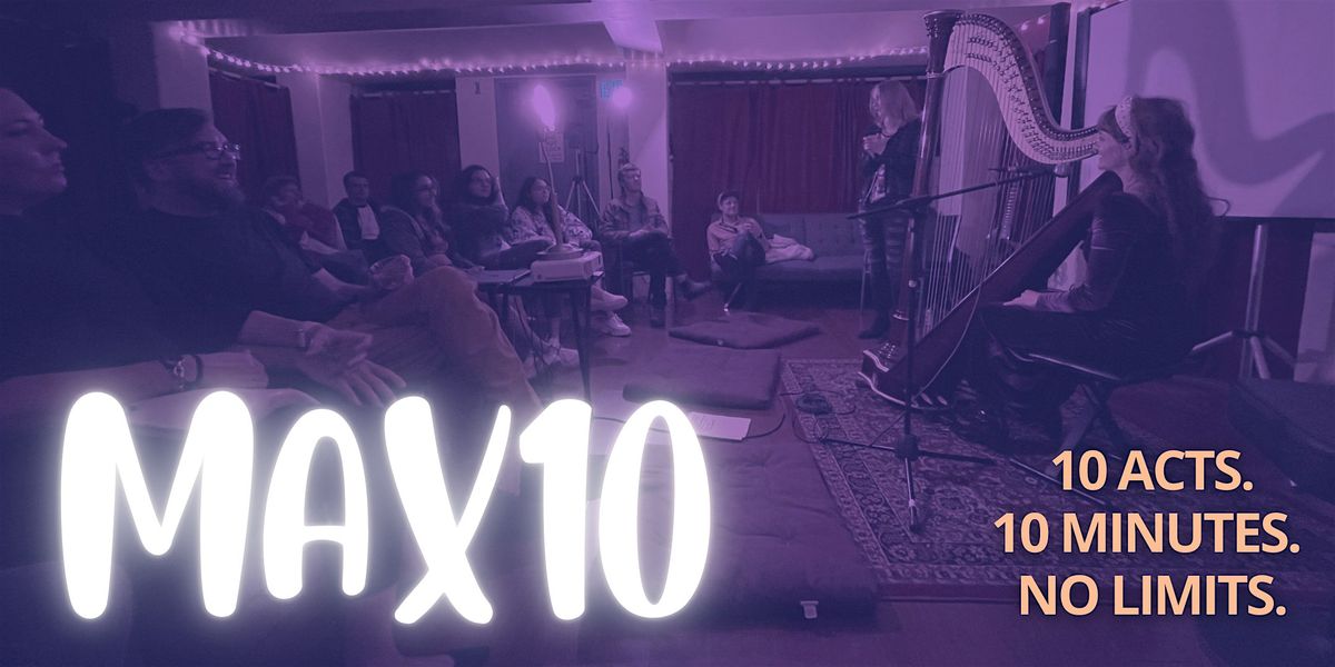 At MAX10, ten performers get ten minutes each to present their new work. Theater, dance, improv, poetry, comedy, and more -- at MAX10, you never know what you might see next! Hosted by Electric Lodge Executive Director Joel Shapiro.