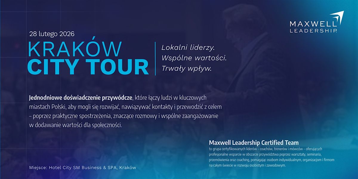 City Leadership Tour to jednodniowe, osobiste doświadczenie, którego celem jest ożywienie przywództwa – praktycznego, ludzkiego i ukierunkowanego na cel. Jest to wydarzenie otwarte dla liderów, profesjonalistów, przedsiębiorców, trenerów, rodziców i wszystkich, którzy są zaangażowani w rozwój osobisty i wywieranie pozytywnego wpływu.
