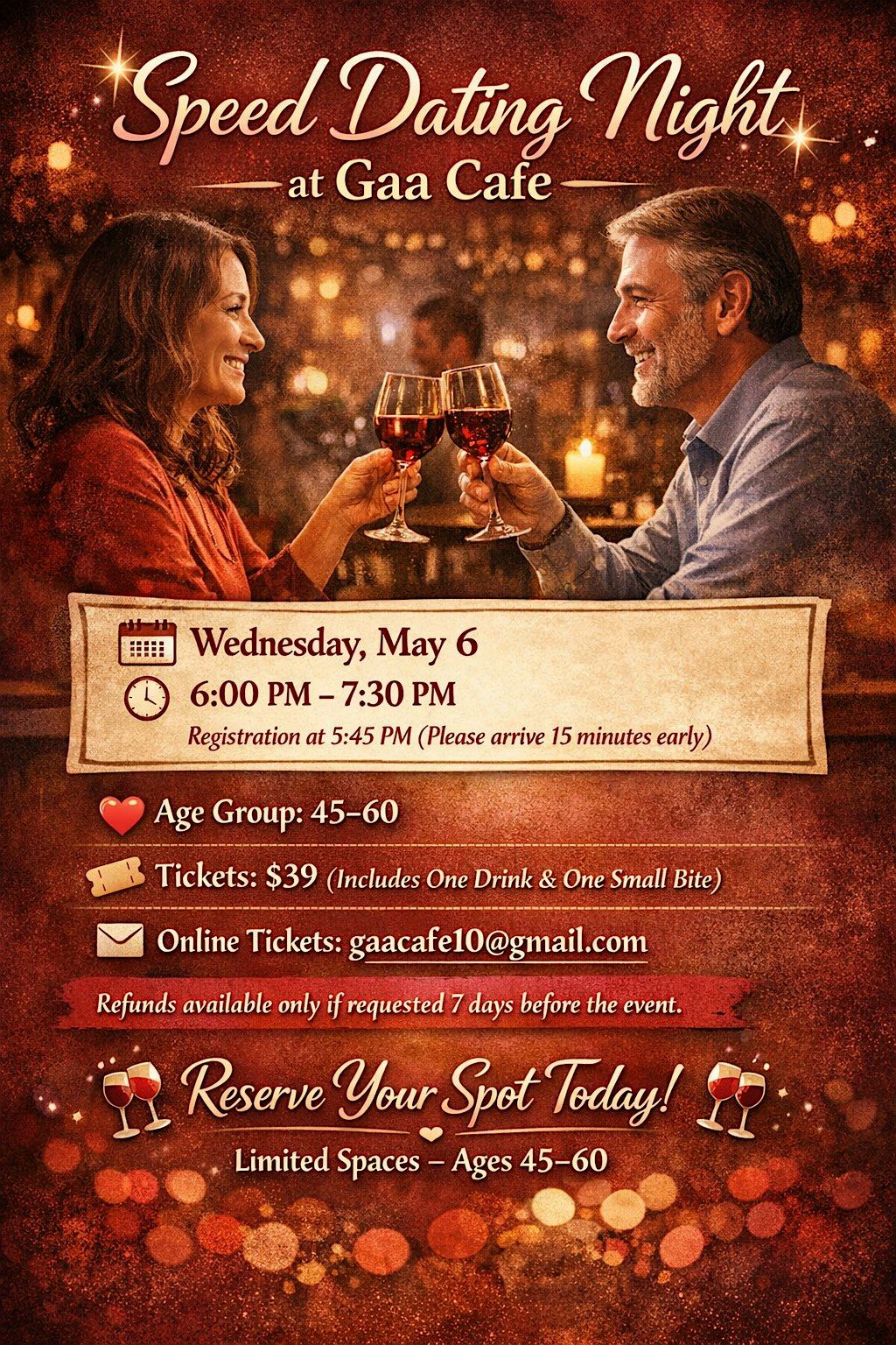 Looking to meet someone special in a warm and cozy setting? Join us for an intimate Speed Dating Evening at Gaa Cafe – A taste of home away from home.