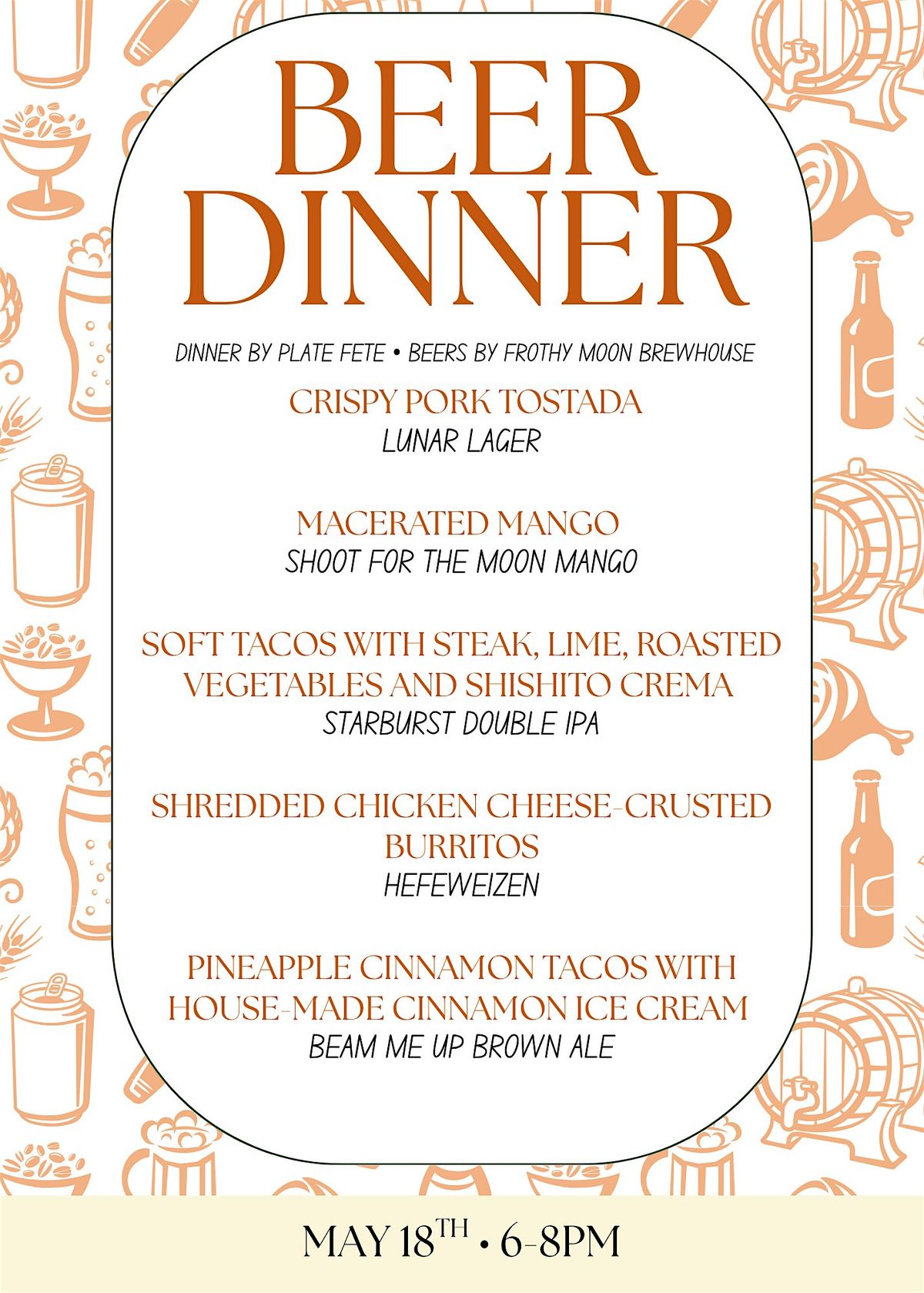 GET READY FOR A FIESTA, FROTHY MOON FAM! We're doing it again! Another Plate FĂȘte + Frothy Moon Beer Dinner is officially on the book