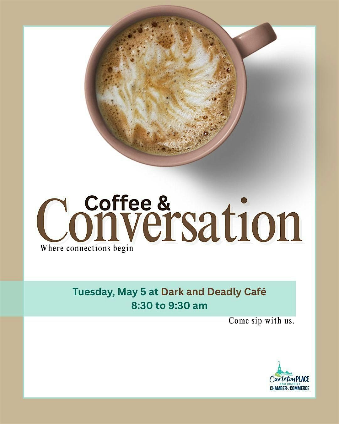 Join us for a relaxed morning of networking and connection at Dark and Deadly Café on Tuesday, May 5 from 8:30 to 9:30 AM.