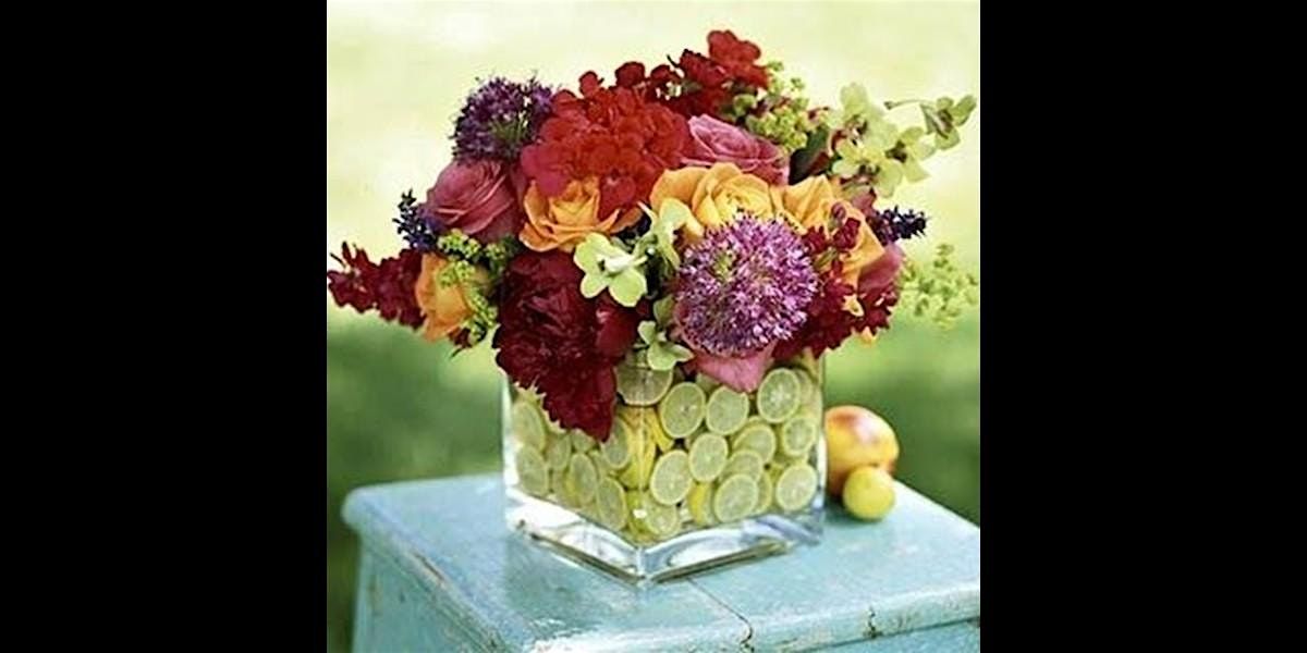 Come learn how to artfully layer flowers in a modern square glass vase, incorporating fresh limes for a crisp pop of color and texture. We’ll cover floral conditioning, balance, proportion and simple design techniques to help your arrangement look full, professional and long-lasting.