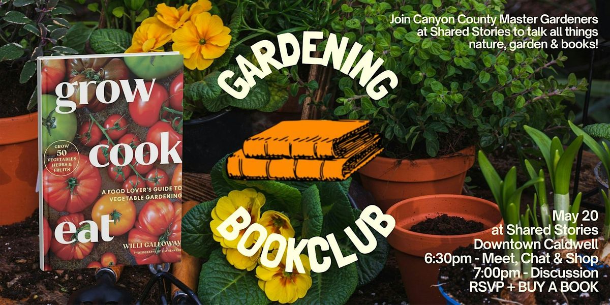 MAY 20- at Shared Stories 6:30pm - meet, chat, snack, & shop 7:00-9:00pm - discussion Join Canyon County Master Gardeners at Shared Stories to talk all things nature, garden & books! We will be meeting bi-monthly (odd months) on the 3rd Wednesday of the Month.