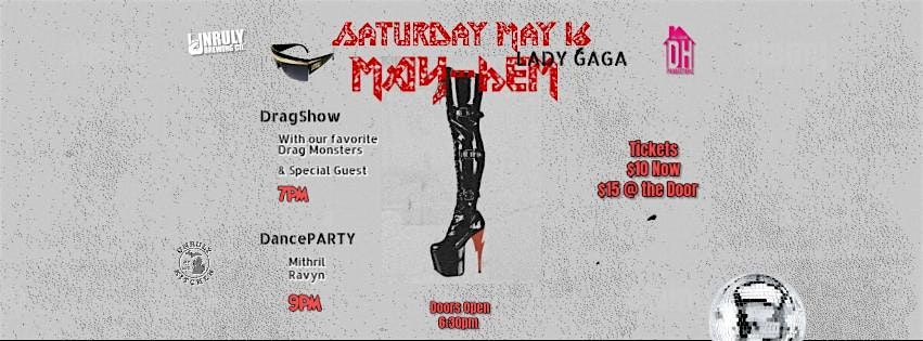 Join us in person for an unforgettable evening of glitter, glam, and groove at the May-Hem Drag Show and Dance Night! Whether you're here to catch fierce performances or show off your best moves on the dance floor, this night promises non-stop fun and fabulousness. Don’t miss out on the live drag extravaganza and the chance to dance the night away with amazing people. See you there!
