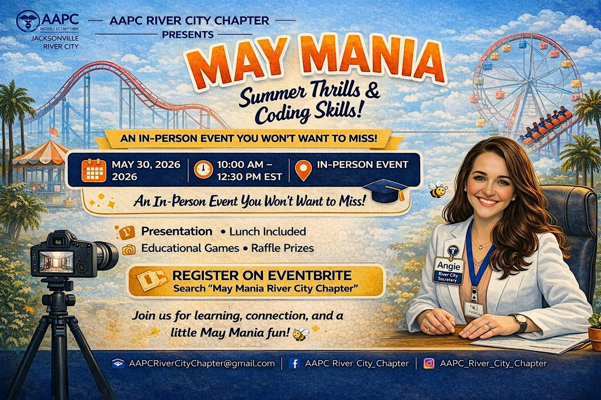 Get ready for May Mania: Summer Thrills & Coding Skills—a high-energy, in-person event designed to bring together coding, billing, and revenue cycle professionals for learning, connection, and a little fun!