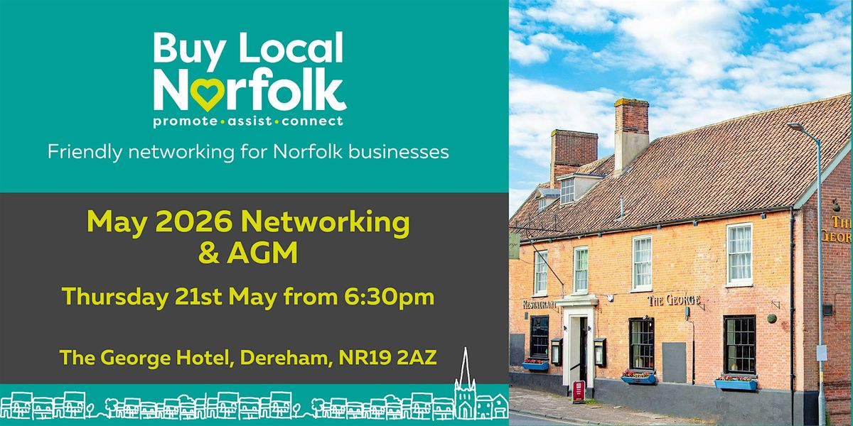 Once that’s done, kick back and enjoy some relaxed networking with fellow Norfolk business owners. The bar will be open to purchase your drinks and light refreshments will be served, so come along and join us on Thursday, 21st May at T he George Hotel, Dereham from 6:30 pm.