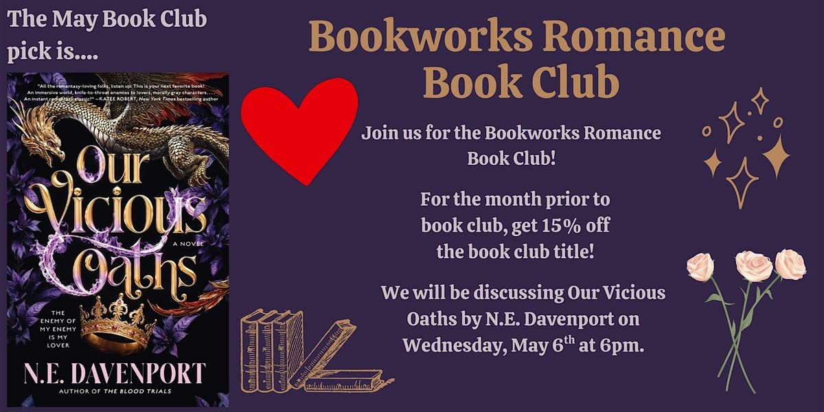 Fan of all things romance and chatting about your favorite books with other readers? Join the new Bookworks Romance Book Club! For the May Romance Book Club, we're reading Our Vicious Oaths by N.E. Davenport.