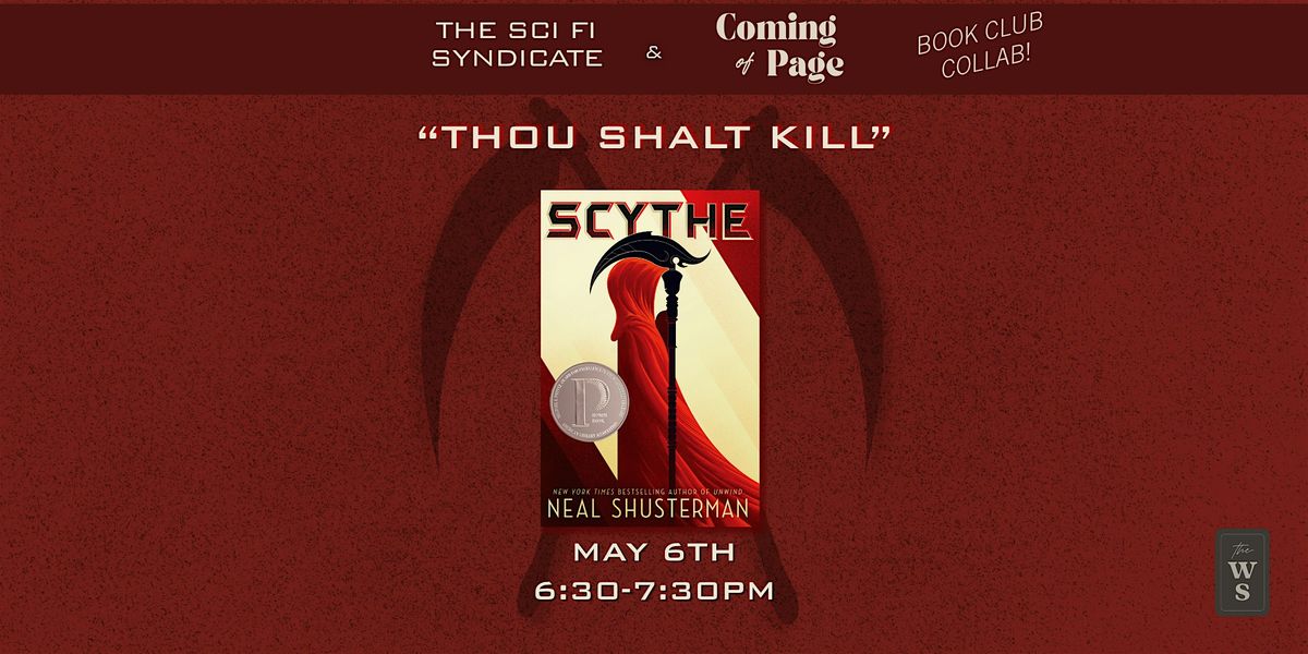 Join us for a sci-fi and young adult book club collab on May 6th! We'll be discussing Scythe by Neal Shusterman.About this Event