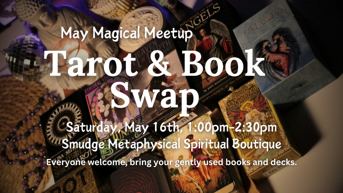 Join us on May 2nd for our monthly Book & Tarot Swap! If you have some books and tarot/oracle decks you are not using, you can bring them in and trade them with others. We have had some really great finds, and everyone leaves with something new.