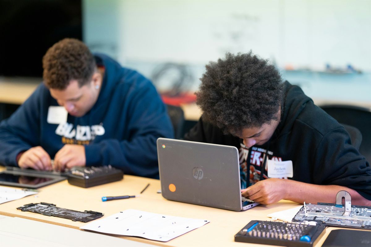 The day begins with an interactive rotation through job stations like diagnostics, intake, and customer service—giving participants a chance to see where their skills and interests align. After lunch (pizza’s on us!), participants will dive into a full Tech Tear Down, disassembling and reassembling real devices like MacBooks, Chromebooks, phones, and tablets.