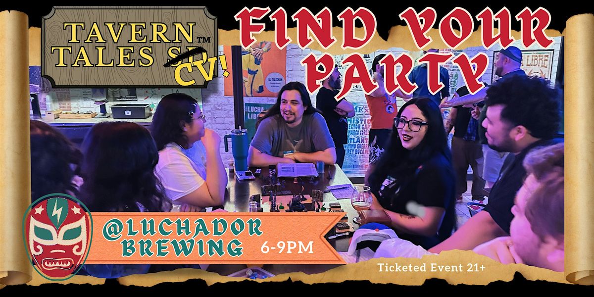 Come join us for a chance to build or expand your nerdy group of friends and participate in rapid-fire Dungeons and Dragons at Luchado Brewing! Designed to connect members of the Table Top community in a fun and inclusive space, Find Your Party will be a low stakes, high fun evening of dice rolling and questing antics. Whether you're a seasoned dungeon delver or have just been a little D&D curious, there's a place for everyone in our tavern. All gaming materials will be provided, so grab your ticket, bring your friends and let's make some positive memories and lasting friendships.