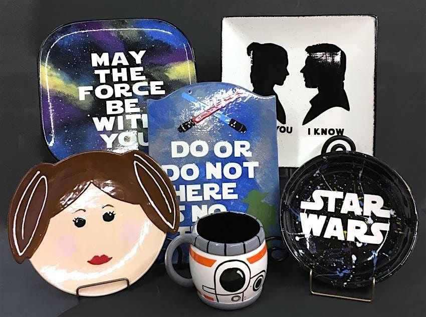 Enjoy themed pottery projects, snacks, and a fun photo booth while you paint masterpieces featuring your favorite Star Wars characters!