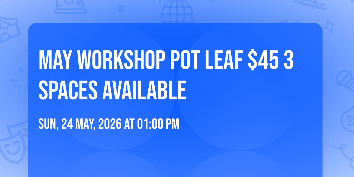 May workshop you will be making a 7x7 pot leaf. Workshop starts at 1pm to 3pm. Cost of workshop is $45 and a $30 non refundable deposit is required upon booking. 3 spaces available.