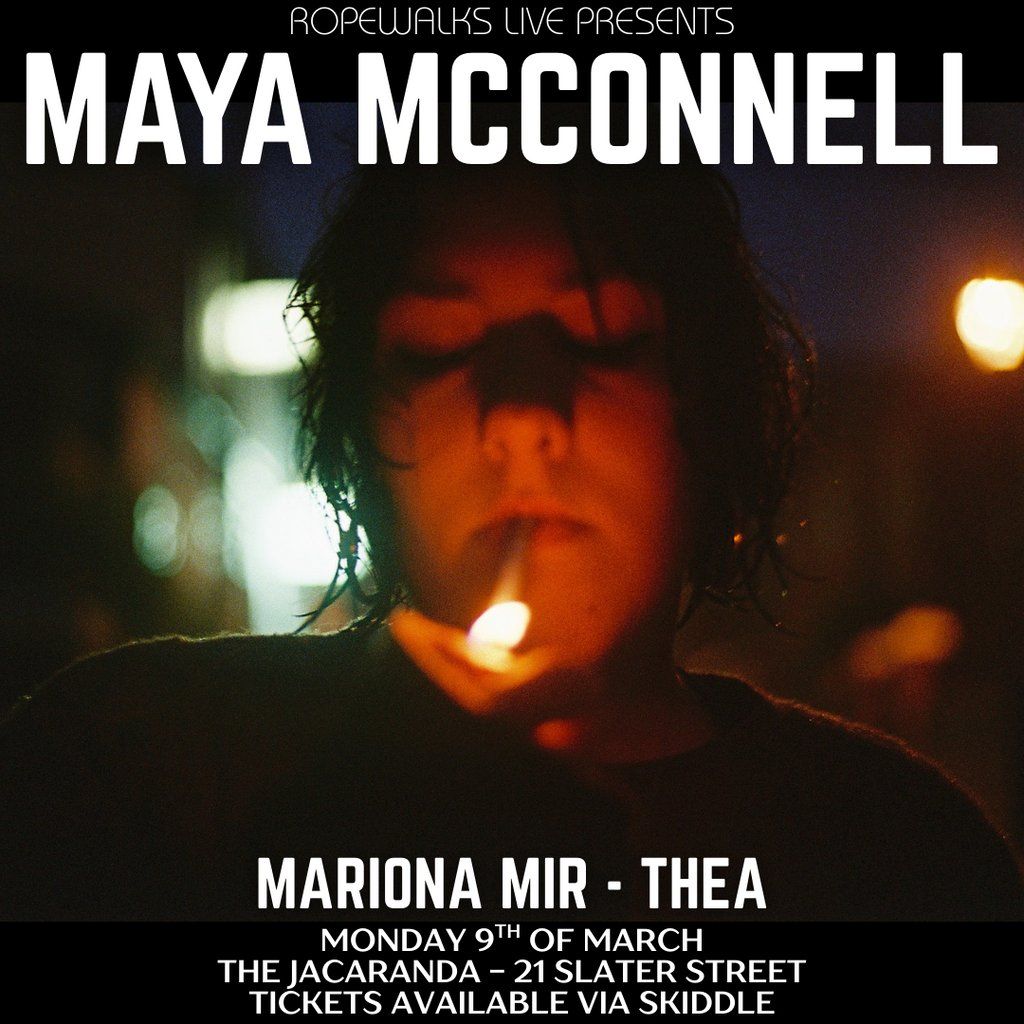 Maya McConnell returns to The Jacaranda for a headline show! support coming from Mariona Mir and TheaMusic Genres : Rock, Indie, Indie Pop