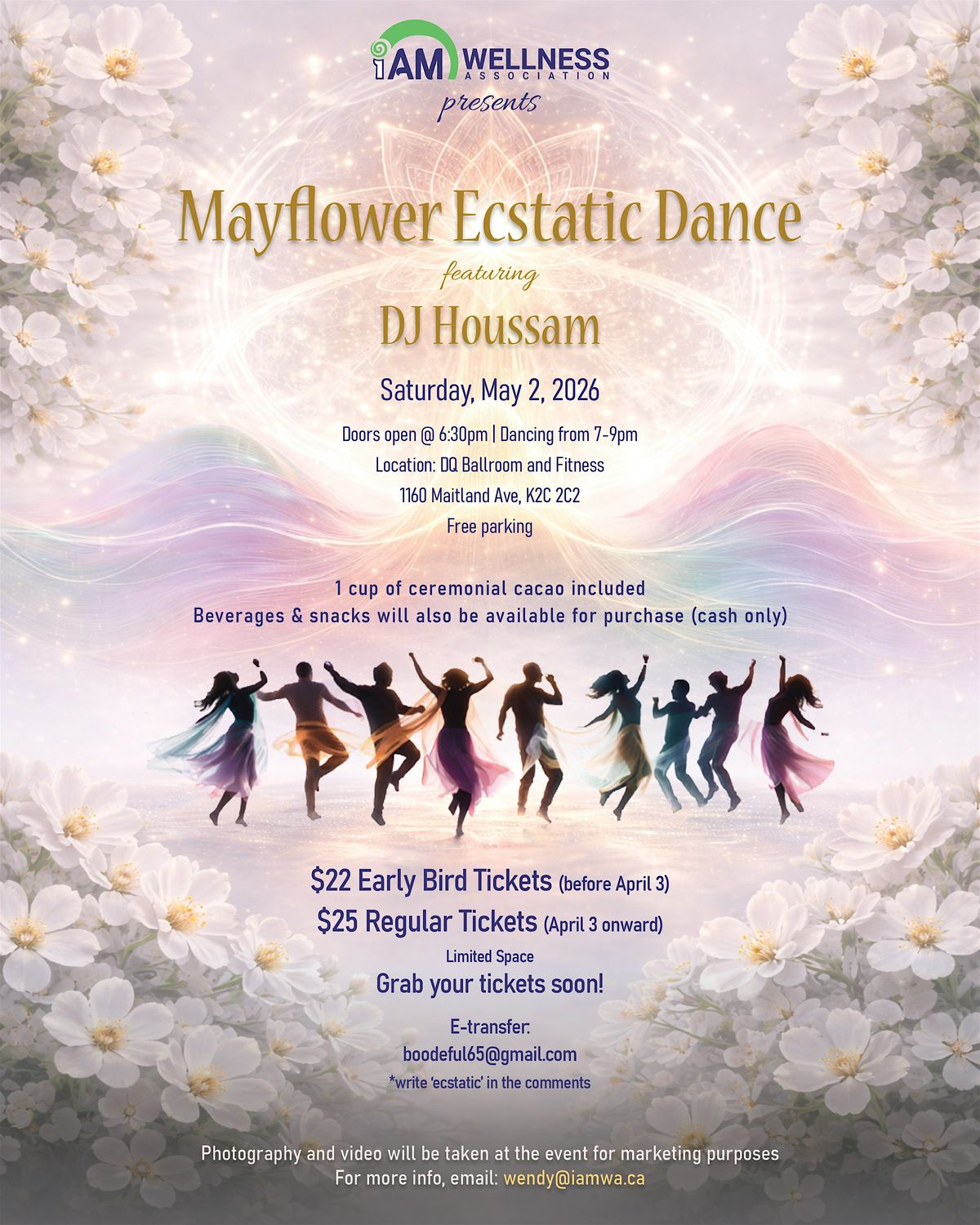 Get ready to move freely and feel the rhythm at this awesome in-person gathering, hosted by I AM Wellness Assocation, with DJ Houssam. Whether you're a seasoned dancer or just want to let loose, this event is all about expressing yourself through music and dance. Look out for the loving rules, the good vibes and a welcoming community. Don’t miss out on the chance to connect, groove, and have a blast in Ottawa!