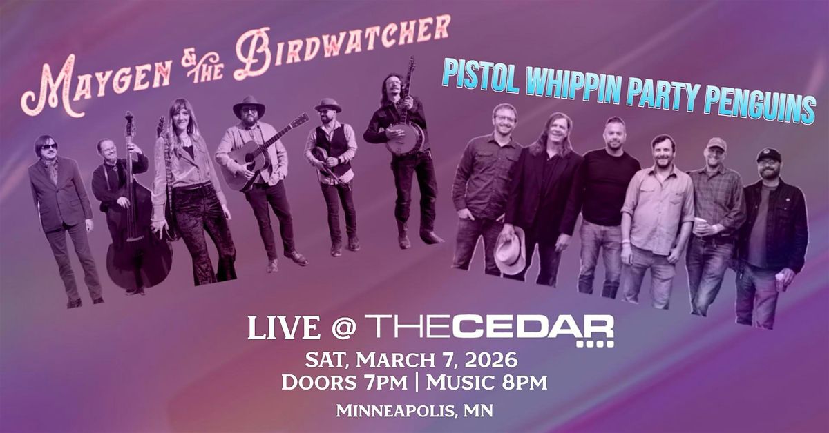 Join us for a rowdy night with two of your favorite bird bands of the Twin Cities. Featuring all the stringed instruments and harmonies your heart could desire. Americana, Roots, Country, whatever you want to call their music, Maygen & The Birdwatcher and Pistol Whippin' Party Penguins' co-show will be a hoot from first downbeat to last pluck of the banjo!