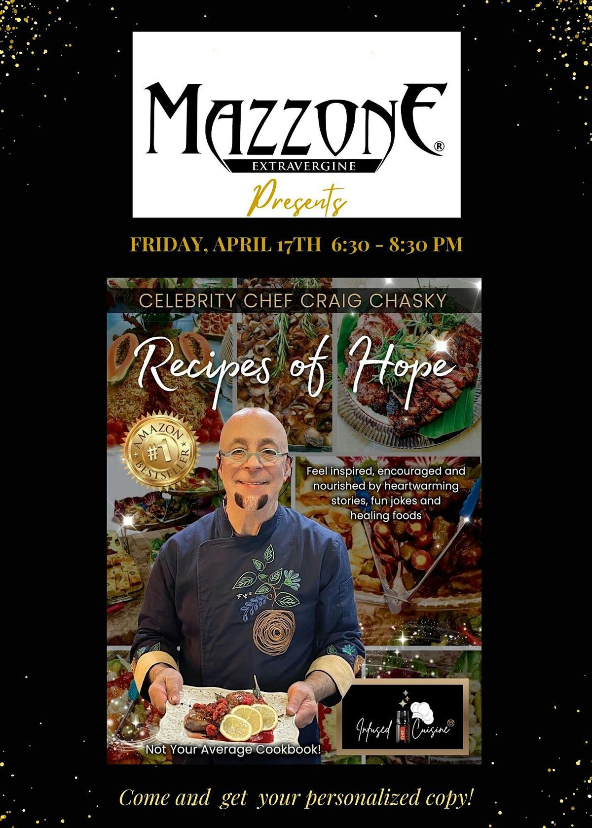 Join us for a Book Signing and Tasting hosted by Mazzone Olive Oil Company, featuring Amazon #1 Bestselling Author and Celebrity Chef Craig Chasky.