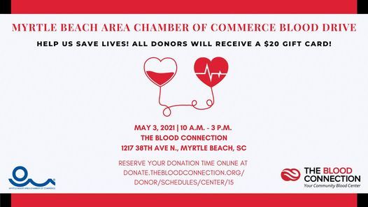 The blood drive will take place at The Blood Connection's location at 1217 38th Ave N., Myrtle Beach on May 3 from 10 a.m. - 3 p.m.