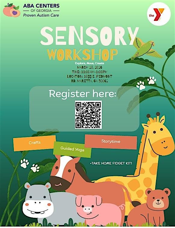 Come hang out in person for a fun and interactive all ages sensory workshop brought to you by the McCleskey-East Cobb YMCA and ABA Centers of Georgia. This event is perfect if you're curious about sensory activities or want to explore new ways to regulate feelings. Bring your friends or family and get ready for a hands-on experience that’s both educational and enjoyable. FreedOM Youth Yoga will be leading a yoga session during this workshop, then concluding with an inclusive story time! Don’t miss out on this awesome opportunity to connect and learn!