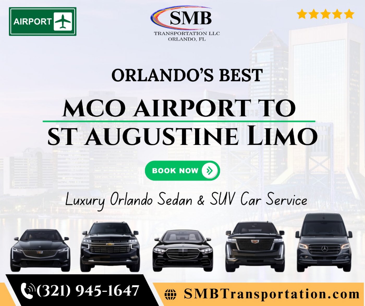 Traveling to St. Augustine for an event, wedding, conference, or festival? Book a private luxury airport transfer from Orlando International Airport with SMB Transportation.