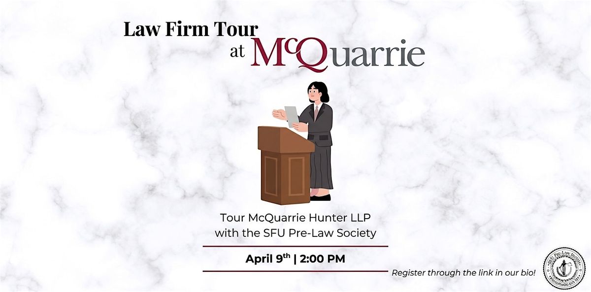Join us on April 9, 2026, from 2:00–4:00 PM at McQuarrie LLP in Surrey for an exclusive firm tour. Gain firsthand insight into the legal profession and experience a professional law office environment.