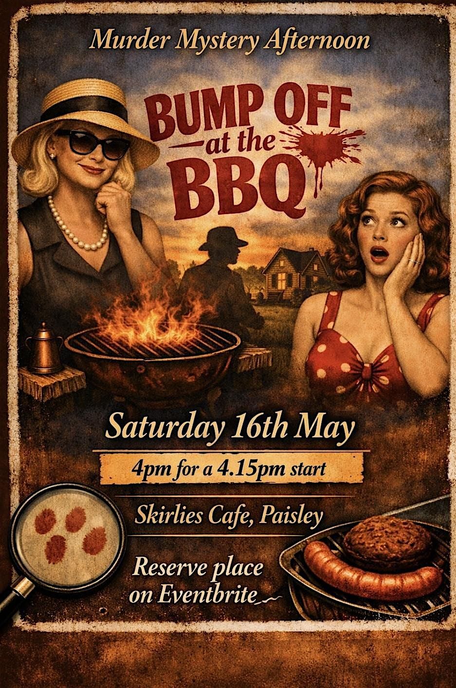 Join me for a fun filled couple of hours on this fully scripted M**der mystery event, 'Bump Off at the BBQ' at Skirlies Cafe, Paisley. 4.00pm for a 4.15pm start.