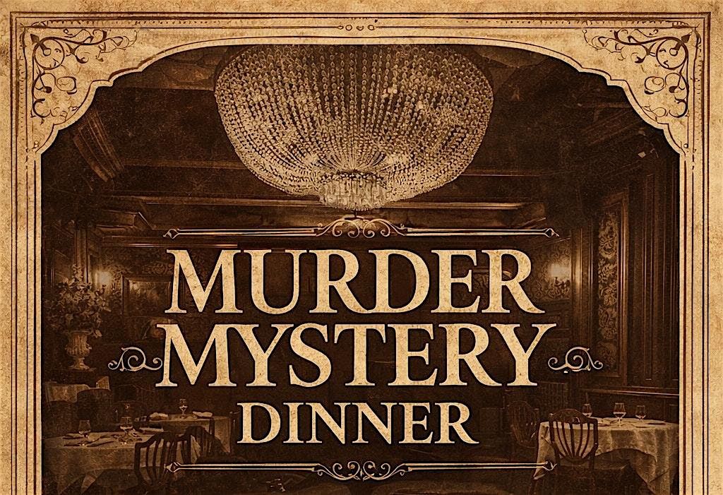 Get ready for a night of thrills and chills at our in-person M**der Mystery Dinner! Dive into an engaging whodunit where YOU might be the key to solving the case. Enjoy great food, clever clues, and lots of suspense with friends or new faces. Dress up, bring your detective hat, and prepare for an evening full of fun and mystery!