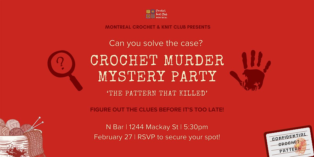 Montreal Crochet Knit Club presents: An evening of cozy chaos, fiber arts drama, and mystery-solving. Come for the yarn, stay for the M**der!