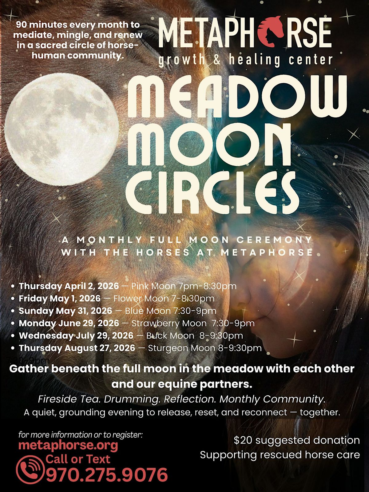 Gather beneath the full moon in the meadow with each other and our equine partners.About this Event