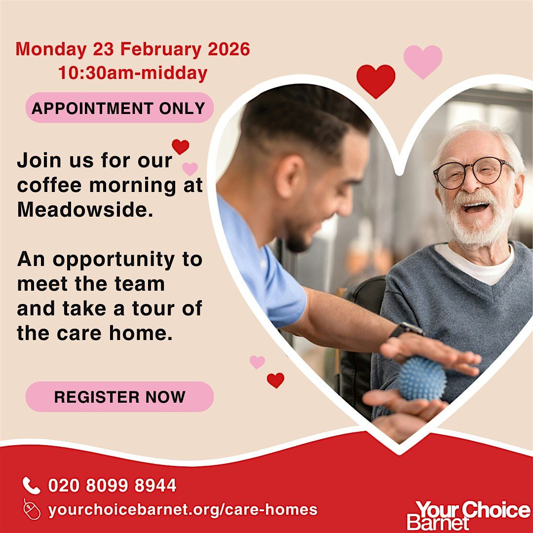 Join us for a fun-filled coffee morning at Meadowside Care Home! Come along, enjoy a warm cup of coffee, and have a chat with friendly faces in a cozy setting. It's the perfect way to start your day with good company and great vibes. We can't wait to see you there in person for some relaxing moments and lovely conversations!