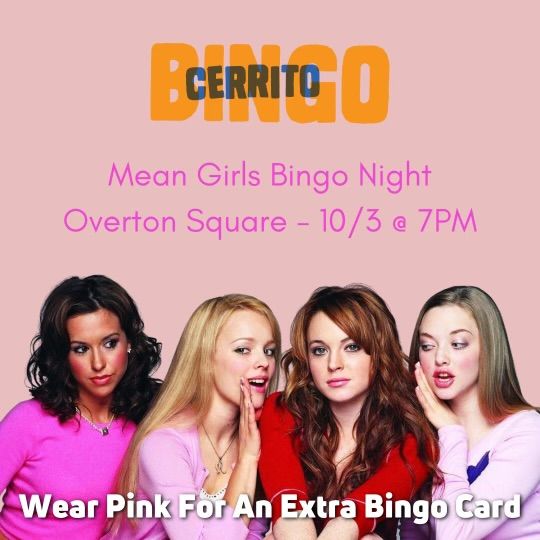 You bingo, Glenn Coco!Celebrate October 3 by wearing pink and playing "Mean Girls" Bingo outside in Overton Square.